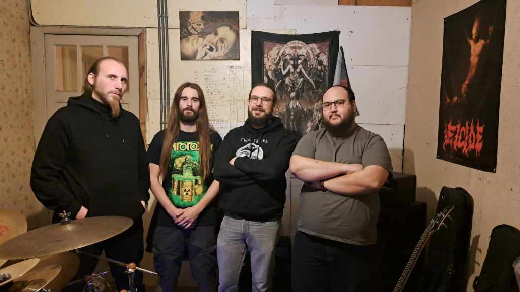 Jérôme (guitariste) : Moi, j’écoute de la musique depuis toujours. J’ai commencé la guitare à 15 ans, et l’envie de faire un groupe est arrivée très vite. Officiellement, ça commence en 2008. A l’époque, on avait 18 ans et c’était un line-up complètement différent. On avait deux guitares, un autre bassiste… Je suis le seul survivant du projet ! (rires) Michel et Romuald, batteur et basiste, m’ont rejoint en 2011 mais la seconde naissance du groupe, c’est vraiment en 2017 avec l’arrivée de Brian (le chanteur, ndlr) qui nous a vraiment donné un second souffle.